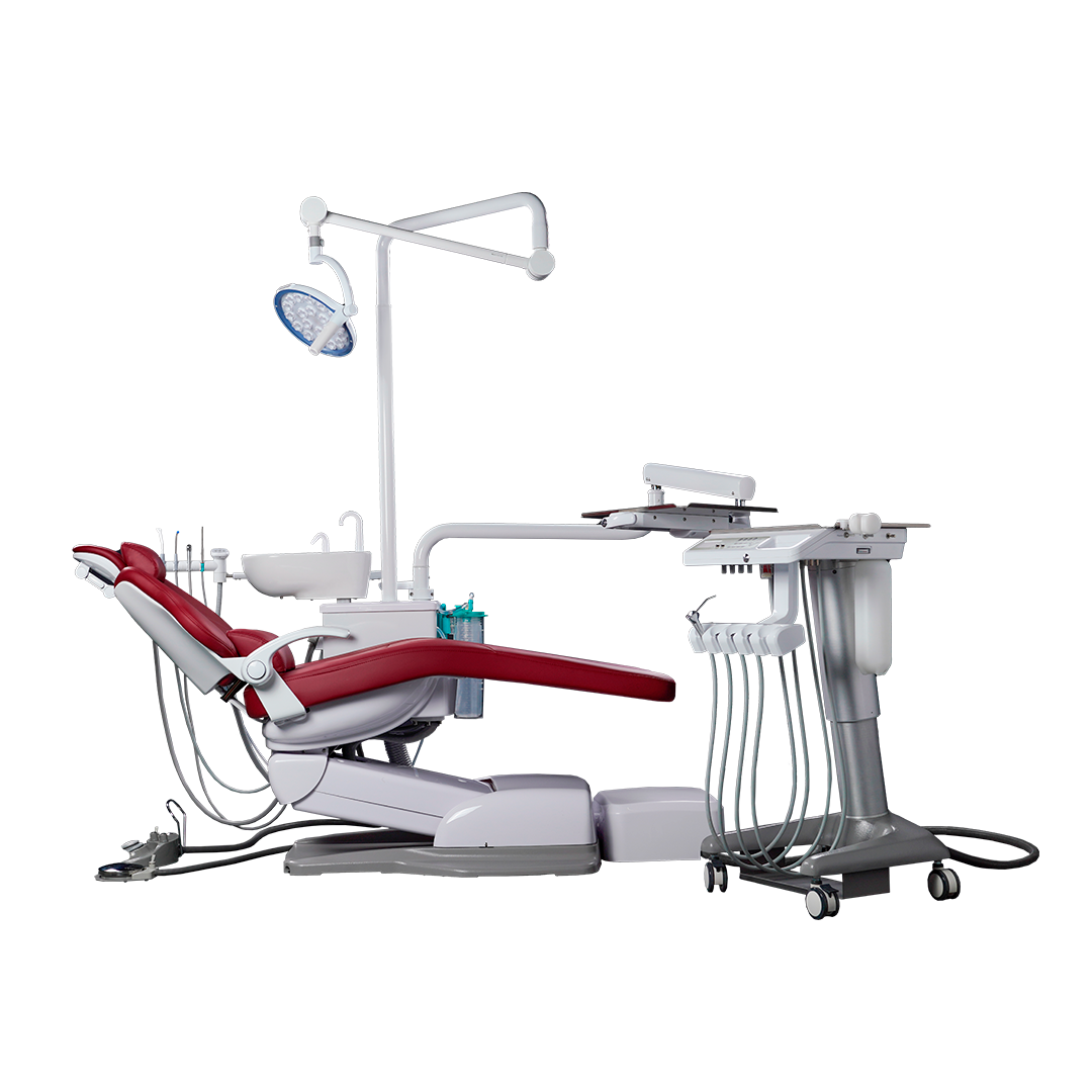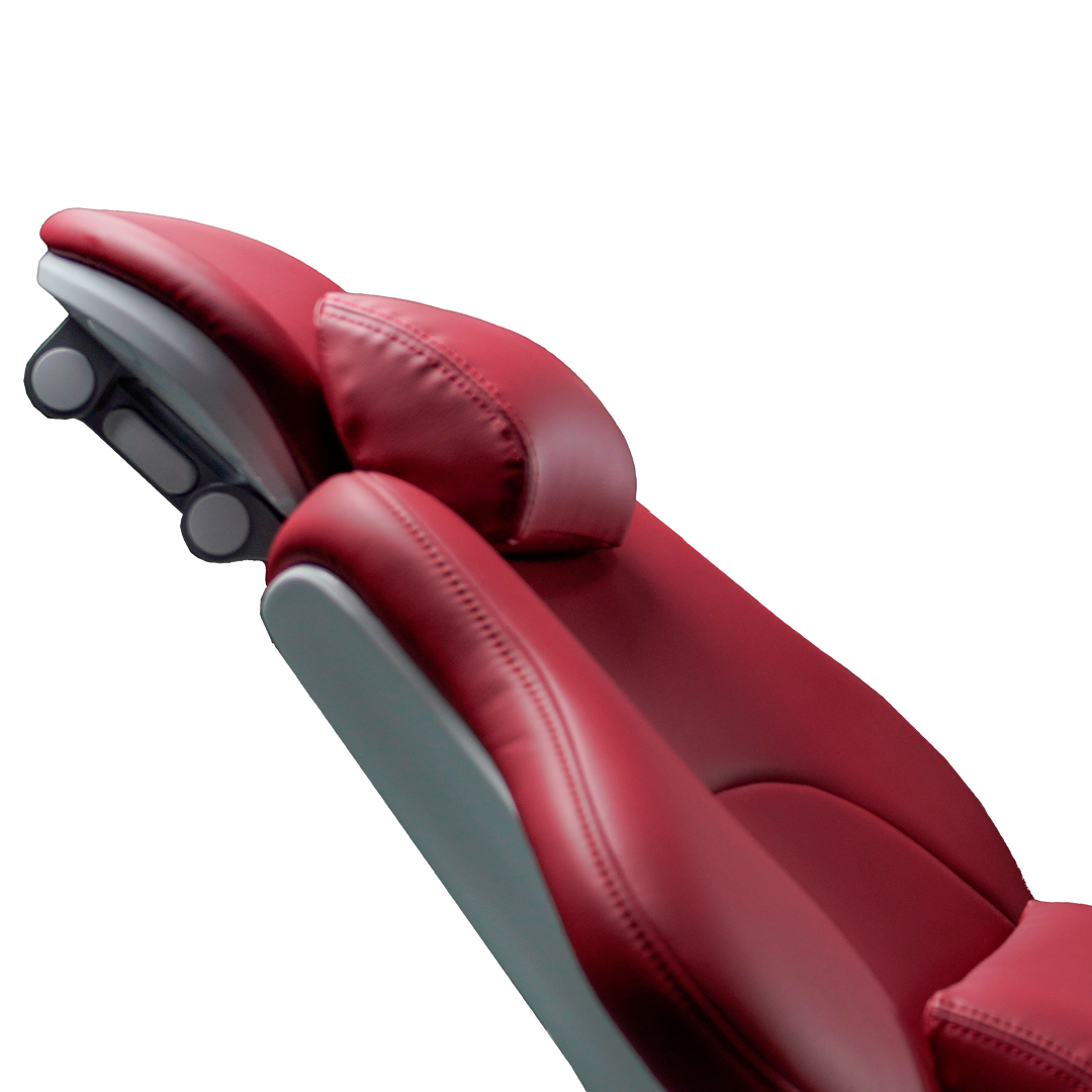 Установка оснащена обивкой из экокожи и прочным основанием кресла пациента из литого алюминиевого сплава. Кресло имеет диапазон поворота до 60°, регулируемый подголовник и поддерживает три программируемых положения.