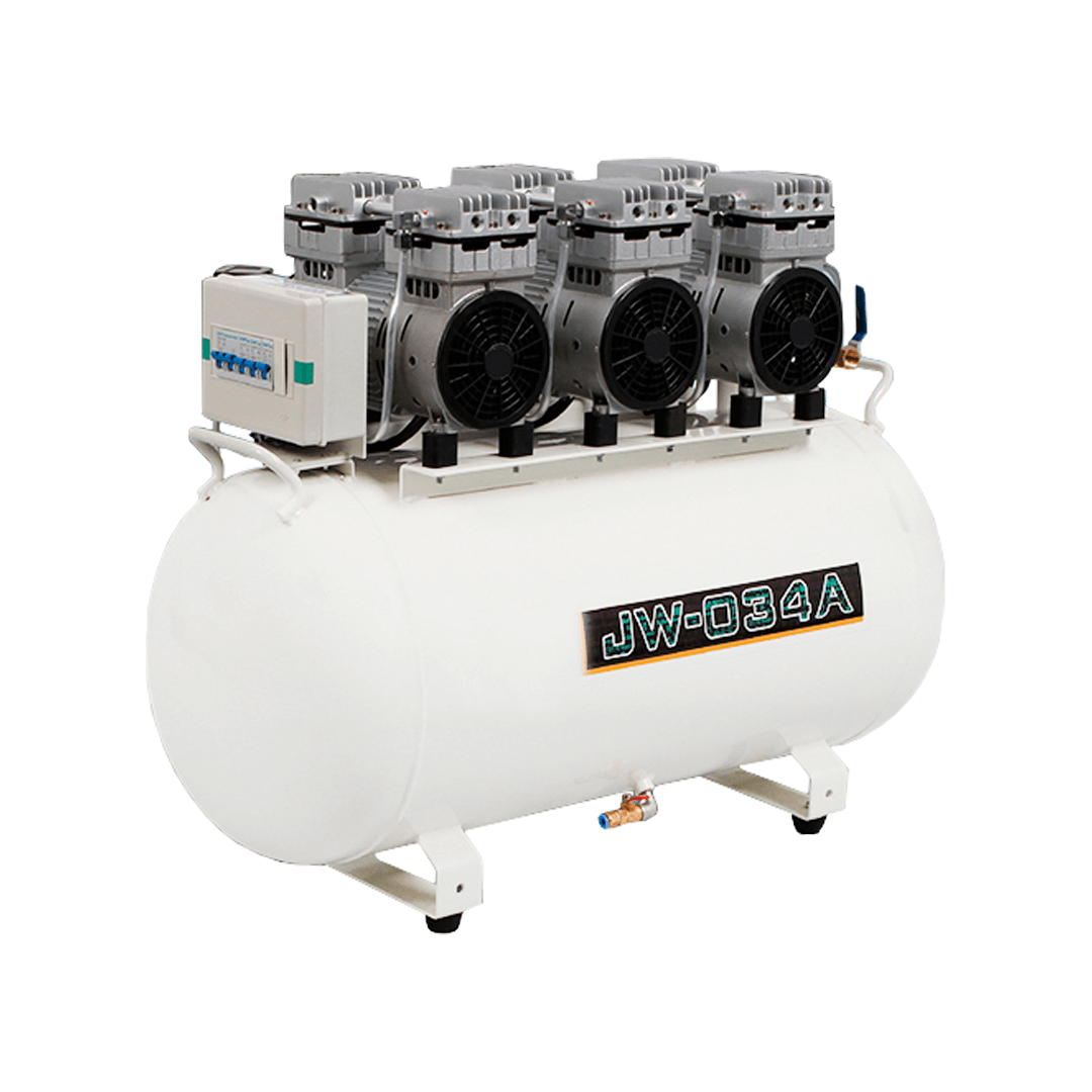Безмасляный стоматологический компрессор рассчитан на одновременное обслуживание 4–5 установок. Оснащён ресивером объёмом 90 литров и обеспечивает производительность до 350 л/мин.
